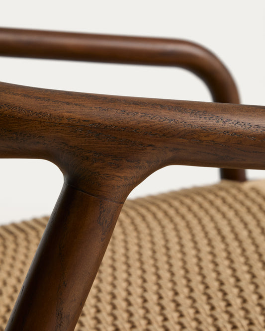 Butaca Derile de madera maciza de roble acabado nogal y cuerda de papel beige FSC 100%