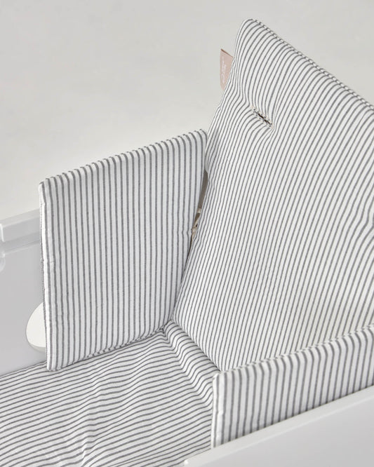 Para que tu peque esté bien cómodo y protegido en su silla Nuun, añádele este cojín completo, cubriendo asiento, respaldo y brazos extraíbles. Además, está hecho 100% con algodón orgánico con acabado hidrófugo, fácil de secar y evita que traspase el agua.