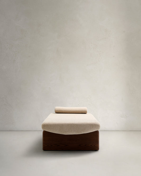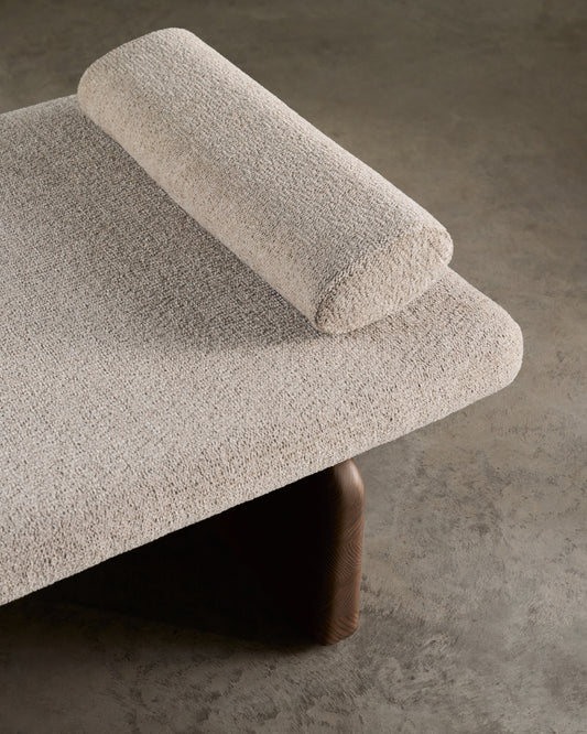Diván Topaz de chenilla beige y madera maciza de fresno con acabado nogal 200 cm FSC 100%
