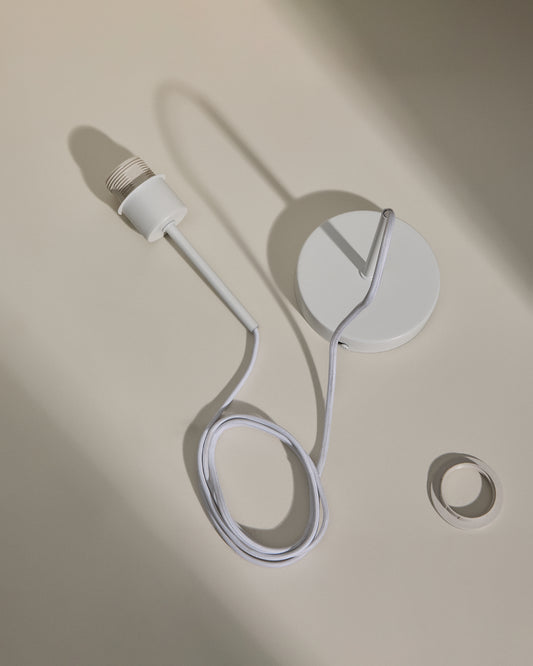 Montura para personalizar tu lámpara Fulvia es una montura de techo fabricada en metal, pensada para ofrecer una base estable y discreta para diferentes tipos de lámparas. Cable textil de 1,50 m Incluye un cable de 1,50 metros cubierto con tejido, elegido para aportar resistencia y un acabado cuidado. Compatibilidad con bombilla E27 La montura es compatible con bombillas E27 de hasta 40W, de modo que permite elegir la fuente de luz según la intensidad y el ambiente que desees crear.