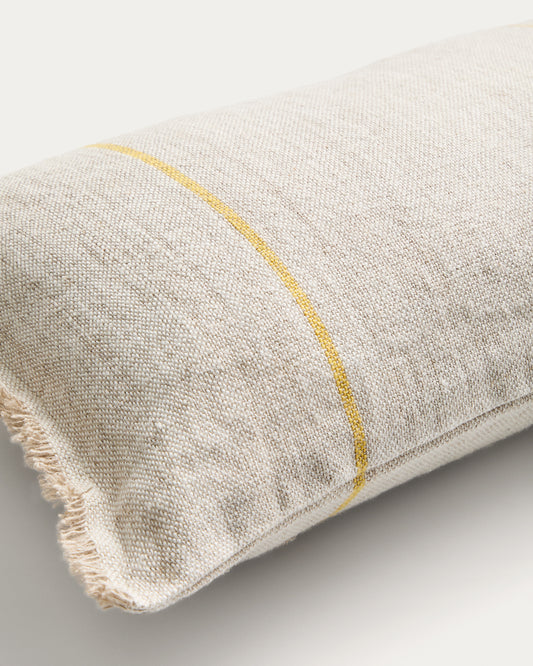 Funda de cojín Lidore de lino beige con rayas a contraste amarillo 30 x 50 cm