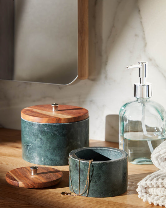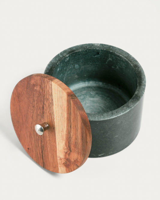 Bote grande Karla de madera maciza acacia y mármol verde