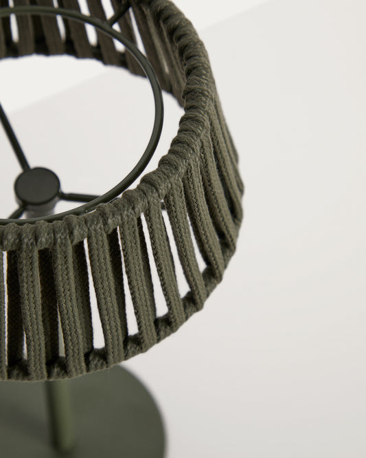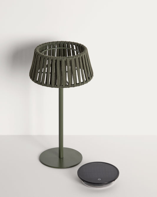 Lámpara de mesa solar para exterior Aldet de cuerda plana y pie de metal verde