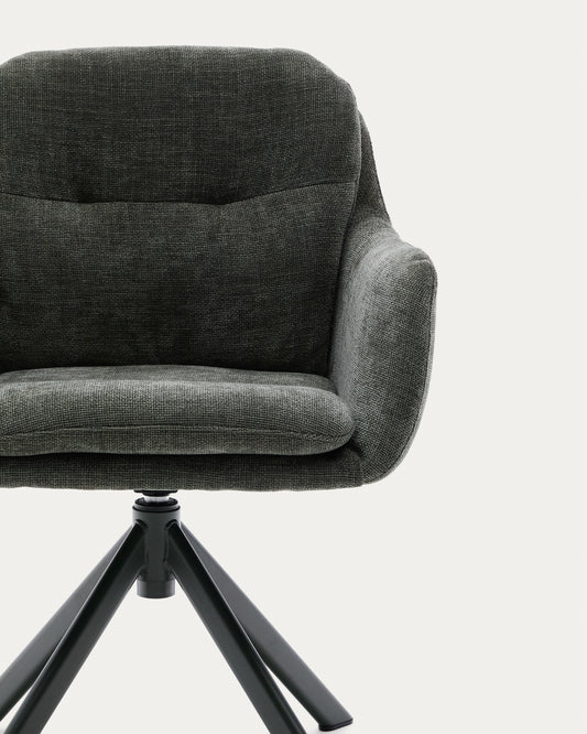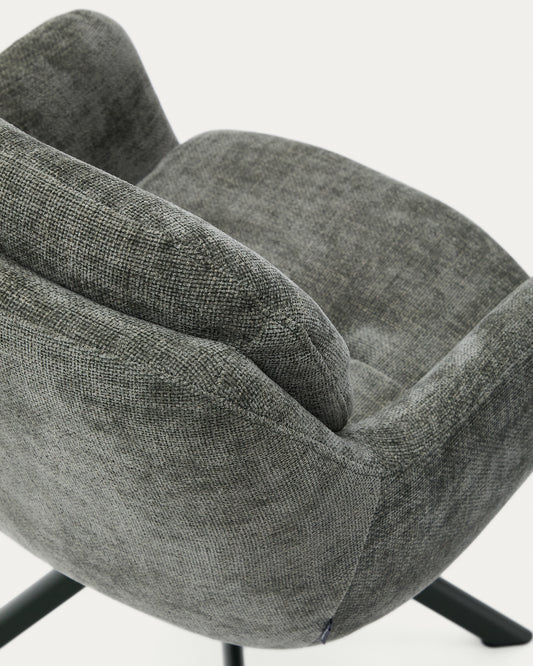 - Silla giratoria con reposabrazos tapizada en chenilla de estructura pequeña y tacto suave.