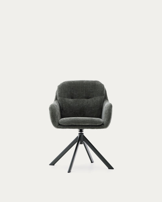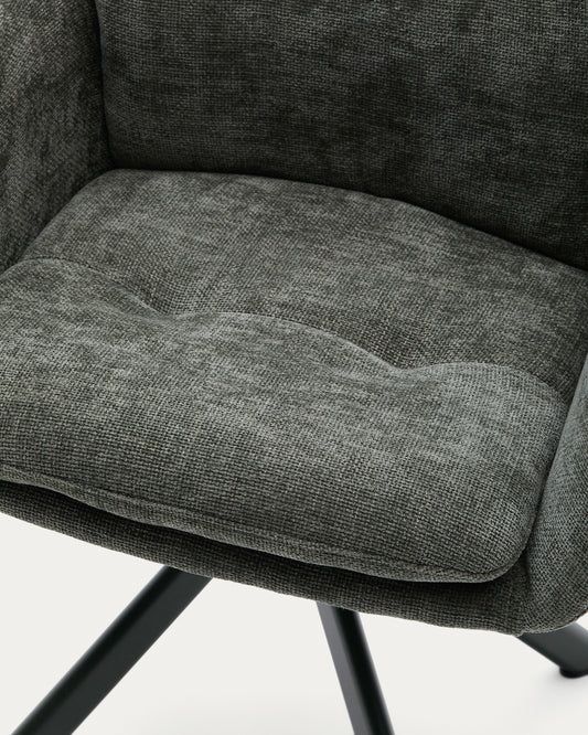 Silla giratoria Lexa de chenilla verde y patas de acero con acabado verde
