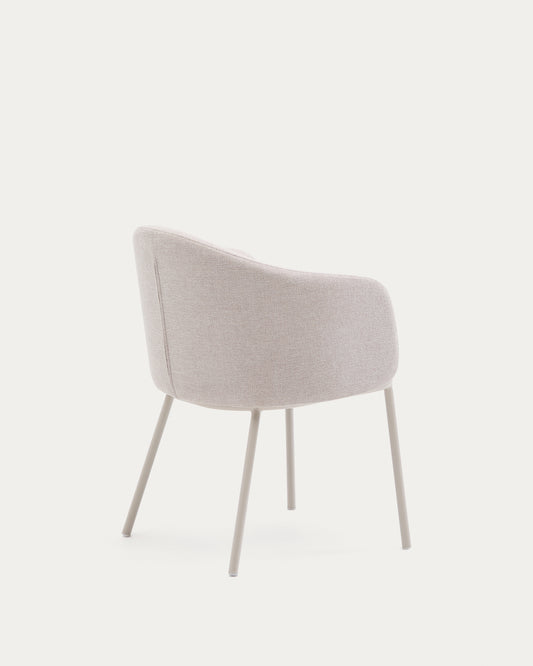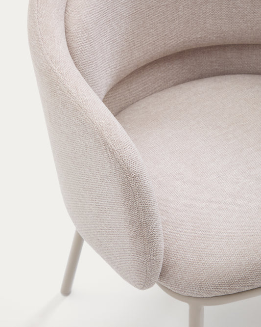Silla Idaira chenilla beige y patas de acero con acabado beige FSC Mix Credit