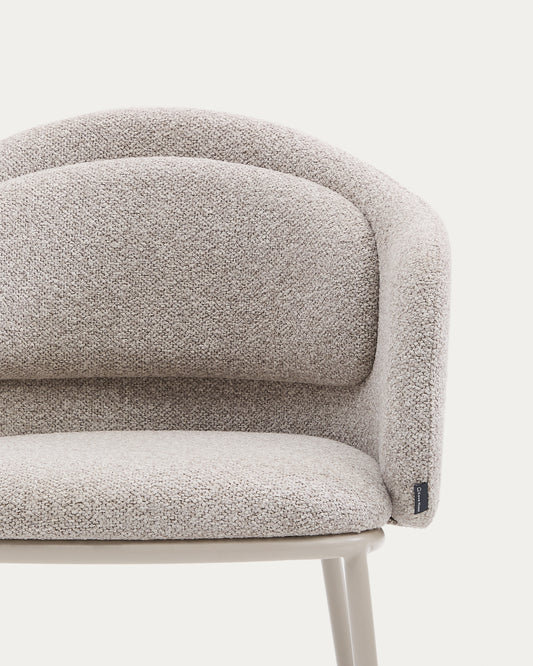 Silla Idaira de chenilla gruesa beige y patas de acero con acabado beige FSC Mix Credit