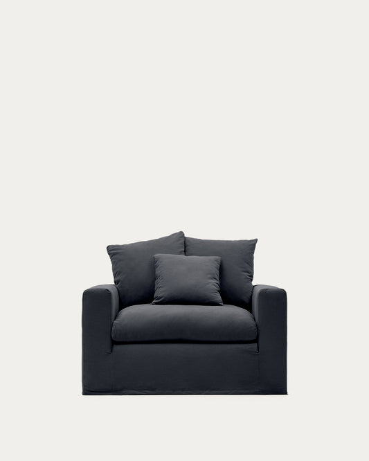 Funda para butaca Nora de lino y algodón gris antracita 140 cm