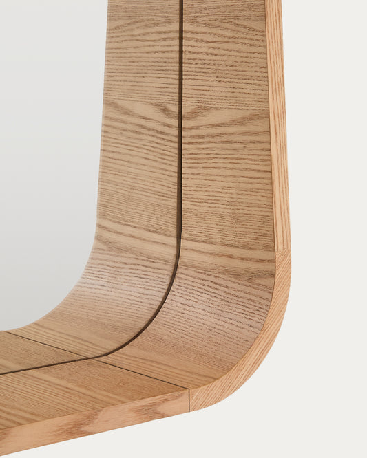 - Espejo de 90 x 60 cm con marco de madera contrachapada de fresno con acabado natural.