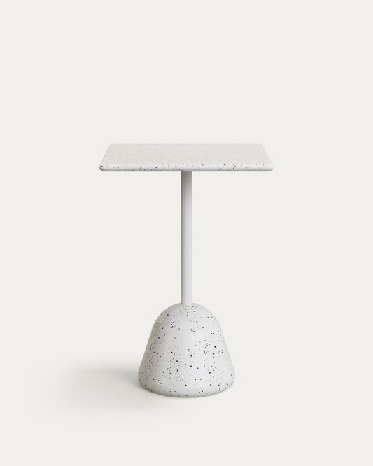 Mesa alta de bar Saura de terrazo blanco con sobre de terrazo blanco 95 x 70 x 70 cm