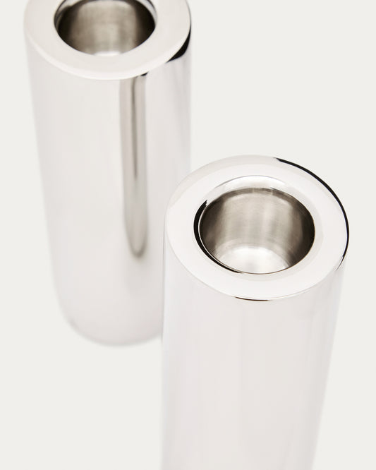 - Set de 2 candelabros de acero inoxidable.