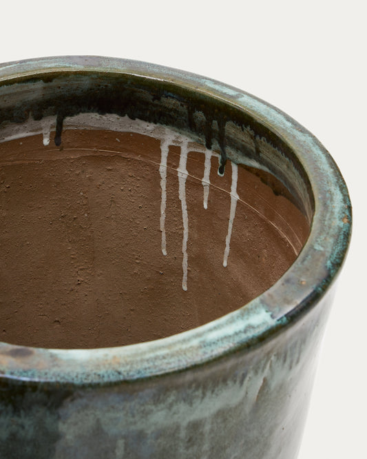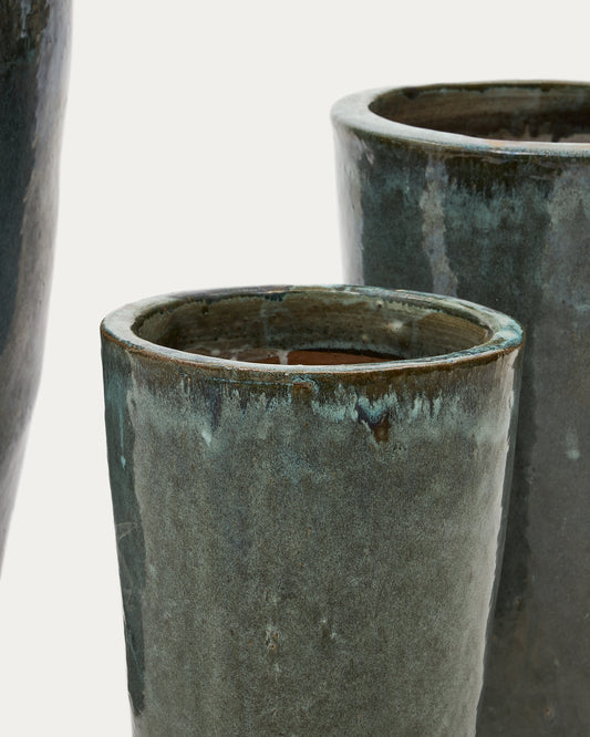 Set Rotja de 3 maceteros de terracota con acabado azul glaseado Ø 26 / 35 / 47 cm