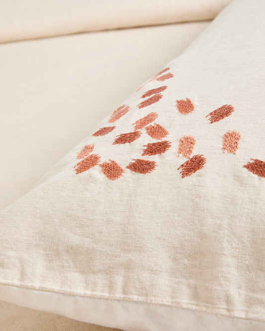 - Hecho de algodón y lino con detalle bordado en la funda de almohada.
