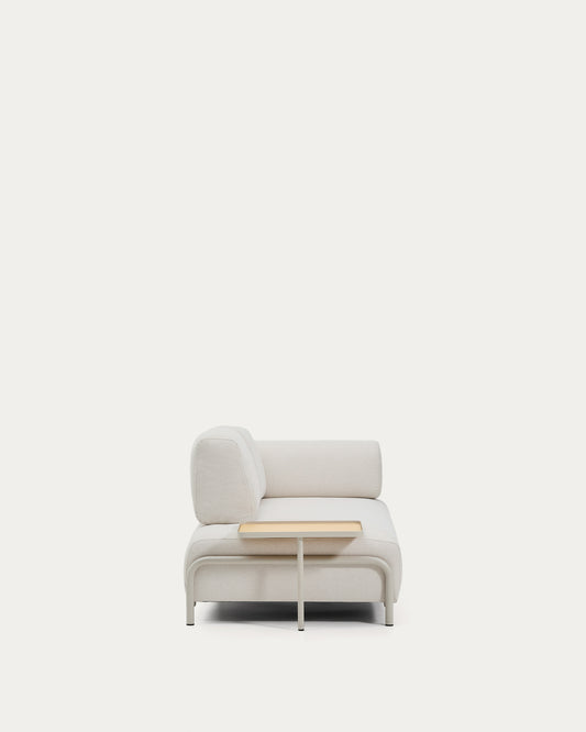- Sofá de 2 plazas con bandeja grande hecha con chapa de roble y estructura de acero beige pintada con recubrimiento en polvo y acabado microtexturizado.