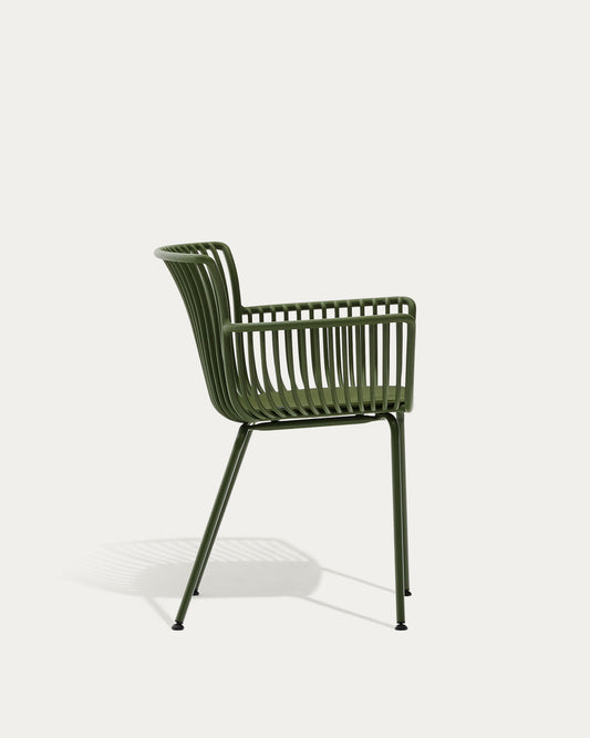 Silla de exterior Surpika con patas de acero verde