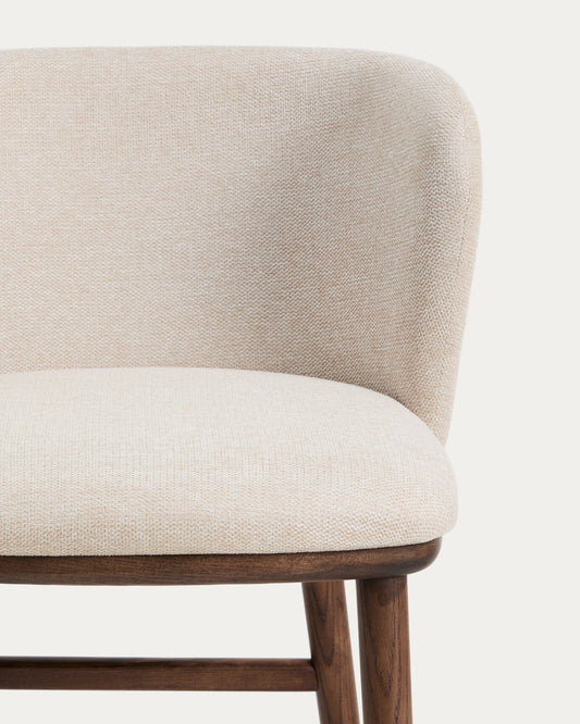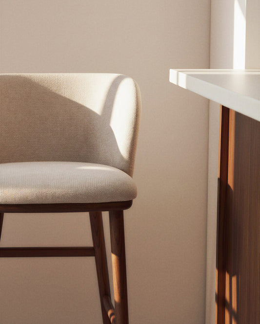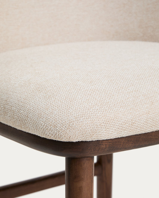 Taburete Ciselia chenilla beige y patas de madera maciza fresno acabado tono nogal FSC Mix Credit 75cm
