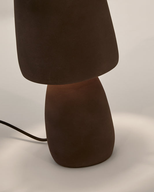 - Lámpara de mesa hecha con terracota con acabado marrón.