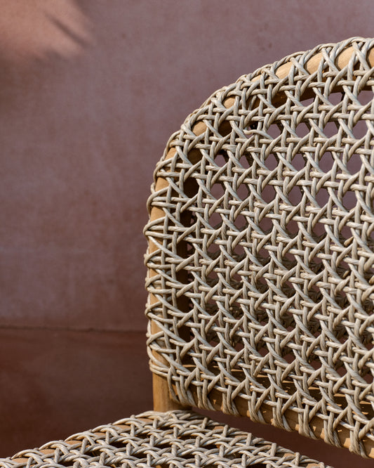 - Trenzado a mano Asiento y respaldo hechos con cuerda resistente a los rayos UV y trenzada a mano.