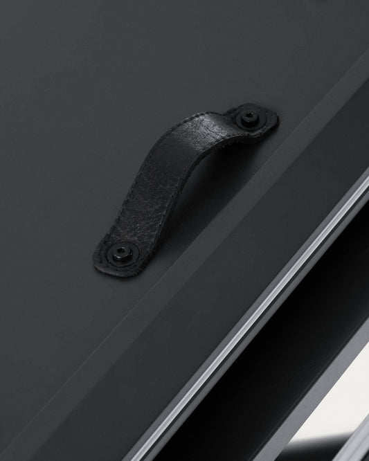 Mesa extensible Theone de cristal y patas de acero acabado negro 160 (210) x 90 cm
