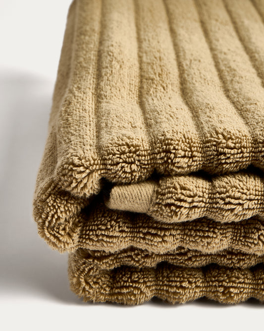 - Toalla de baño hecha 100% de algodón con estructura ondulada.