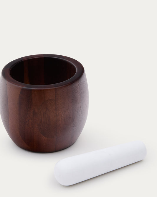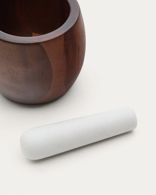 Mortero Tori de madera de acacia y mármol blanco FSC 100%