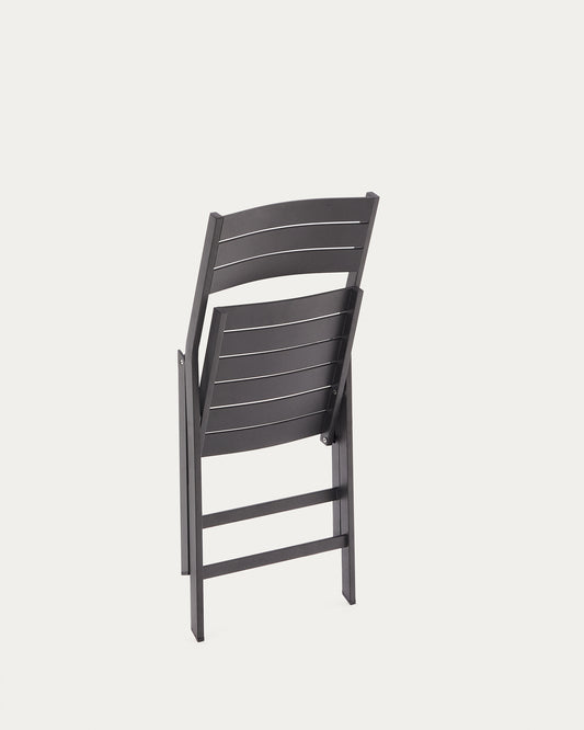 - Silla plegable hecha de aluminio con acabado gris oscuro.