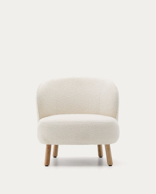 Butaca Ulit de borreguito blanco y patas de madera maciza haya acabado natural