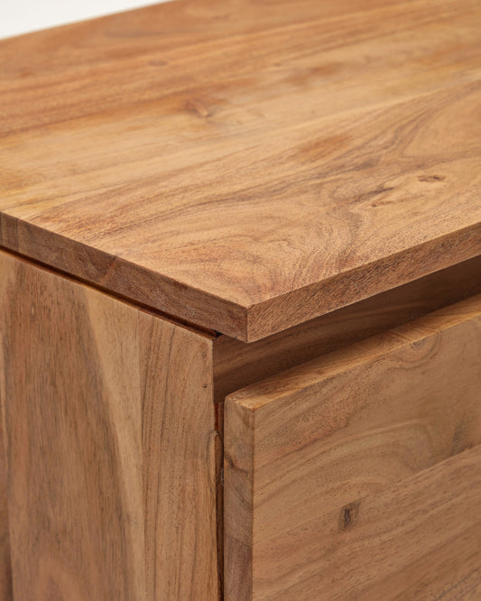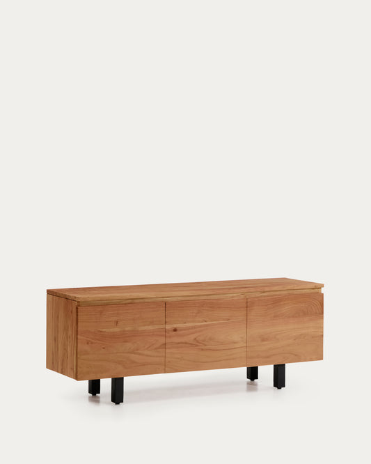 La colección Uxue redefine la funcionalidad y el estilo en cualquier espacio gracias a su diseño depurado y contemporáneo. La madera maciza de acacia, con su acabado blanqueado, transmite una calidez única y realza el veteado de la madera, aportando luminosidad y sofisticación al ambiente. Cada puerta se integra perfectamente en el conjunto, creando una imagen armónica y minimalista que se adapta a cualquier tipo de decoración, desde la más moderna hasta la más clásica. Las patas de acero con acabado negro aportan un contraste elegante y sutil, elevando la estructura y garantizando estabilidad y durabilidad. Las patas son regulables, lo que permite salvar cualquier desnivel del suelo y asegurar que el mueble TV siempre se mantenga perfectamente nivelado. Pensado para adaptarse a tus necesidades, este mueble TV incorpora agujeros en la parte trasera que permiten organizar y pasar los cables de tus dispositivos electrónicos, manteniendo el orden y la estética del espacio. Las bisagras de cierre suave ofrecen comodidad y seguridad en cada apertura y cierre, protegiendo tanto el mueble como su contenido. Este mueble TV es la solución perfecta para quienes buscan capacidad de almacenaje, diseño atemporal y robustez en una sola pieza, convirtiéndose en el protagonista indiscutible de cualquier estancia.