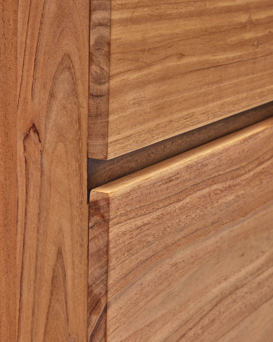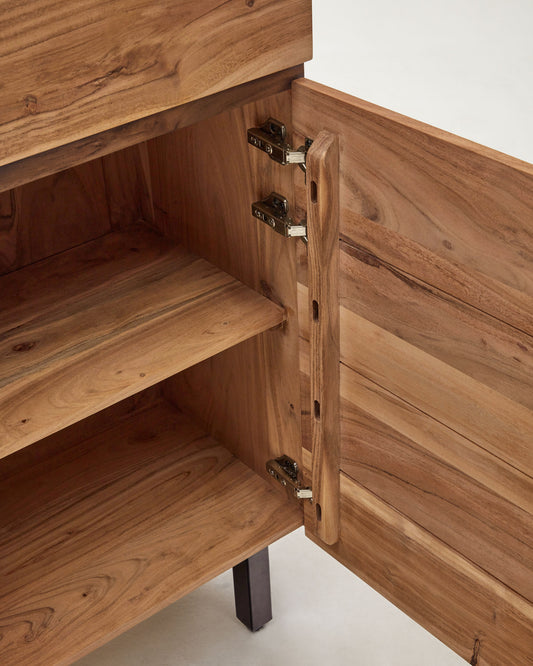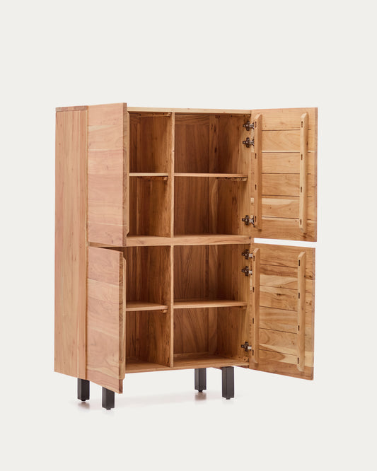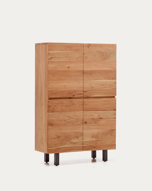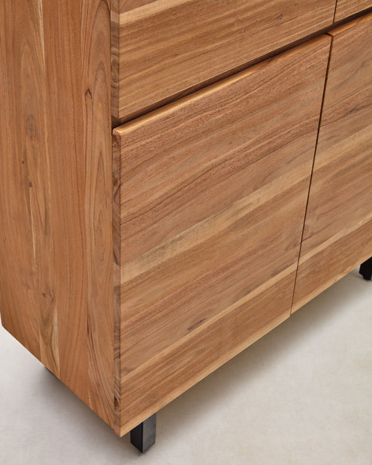 Aparador alto Uxue 4 puertas de madera maciza de acacia con acabado blanqueado y acero negro 100 x 155 cm