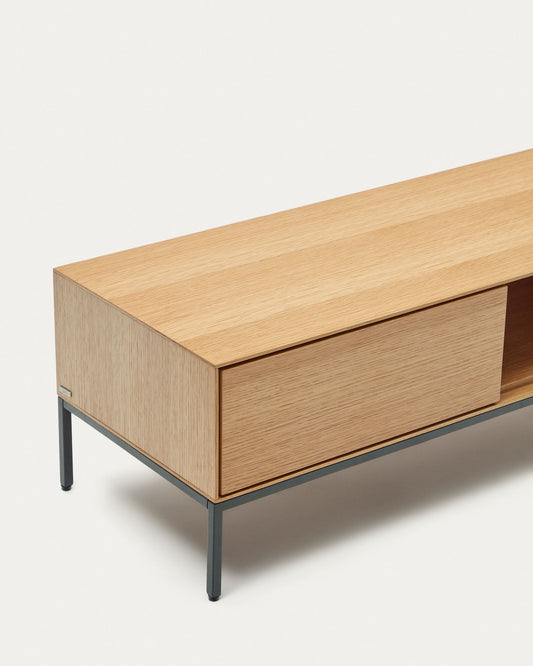 Mueble TV Vedrana 3 cajones de chapa de roble y patas de acero negro 195 x 35 cm