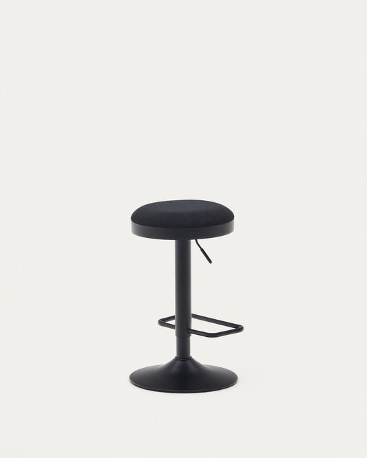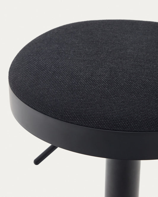 Taburete Zaib de chenilla negro y acero negro mate altura 63-84 cm FSC 100%