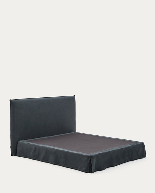 Lit déhoussable Jaira en lin et coton gris anthracite pour matelas de 180 x 200 cm FSC Mix Credit