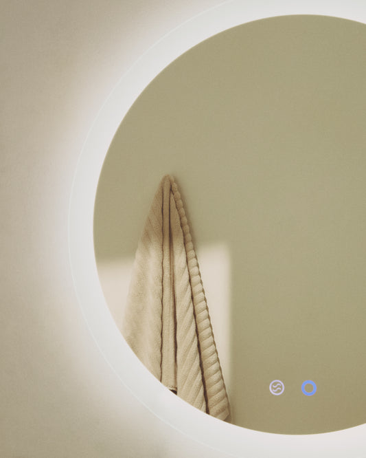 Miroir rond Mervi de salle de bains avec éclairage LED et traitement antibuée Ø 80 cm