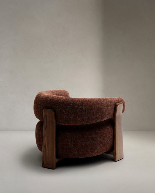Fauteuil Granite en tissu chenille marron et pieds en bois de frêne finition noyer FSC 100 %