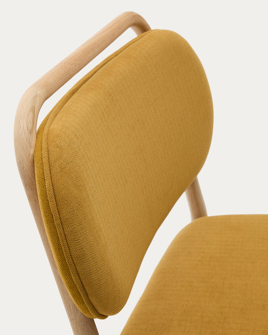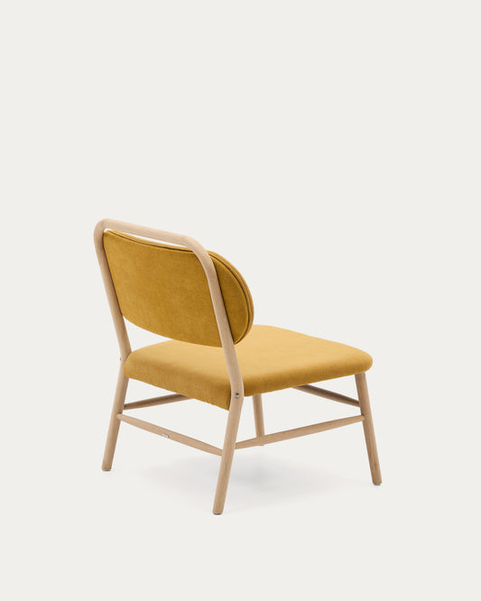 Fauteuil Helda en tissu chenille moutarde et bois de chêne FSC Mix Credit