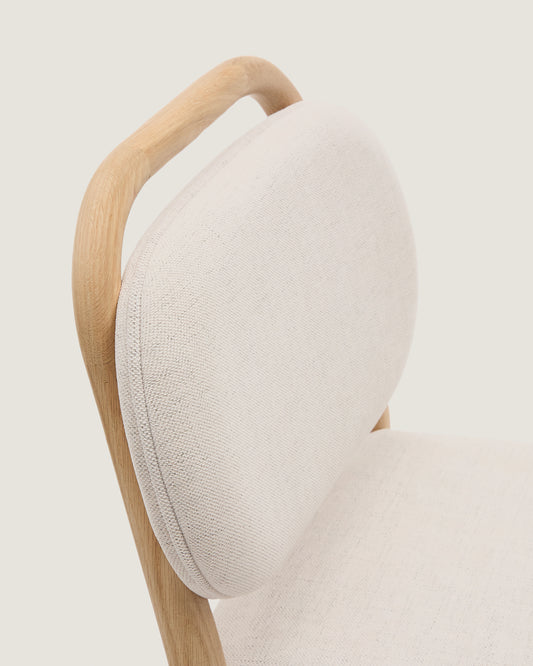 Tabouret Helda en chenille beige et bois de chêne FSC Mix Credit 65 cm