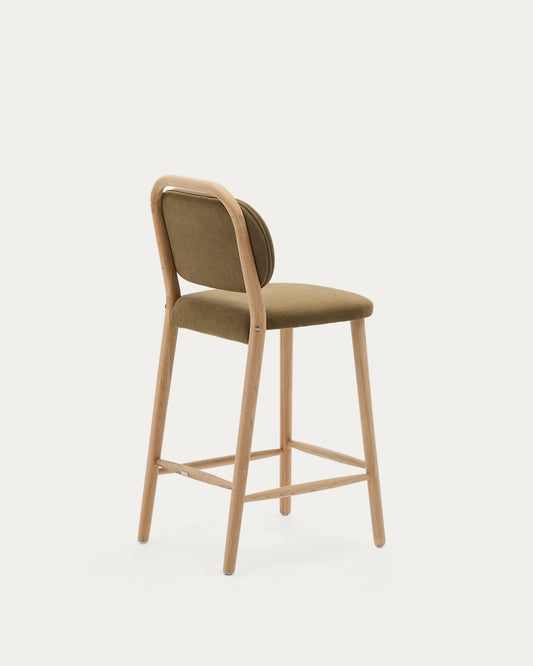 Tabouret Helda en chenille verte et bois de chêne FSC Mix Credit 65 cm