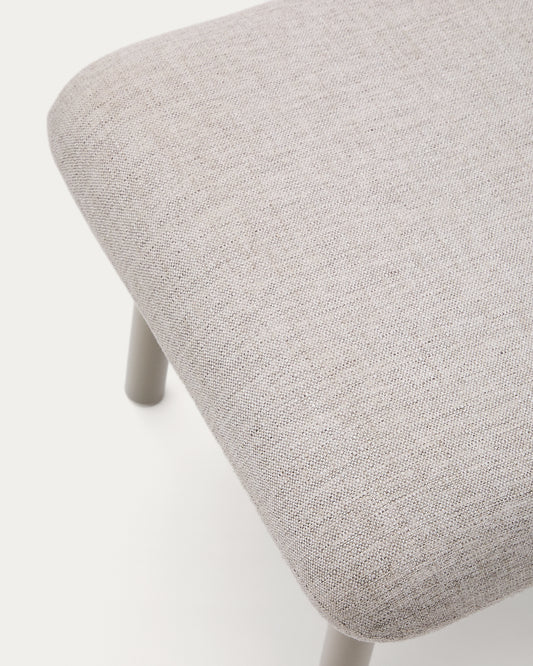 • Repose-pieds tapissé en tissu structuré de couleur beige. Tissu bicolore traité pour faciliter le nettoyage.