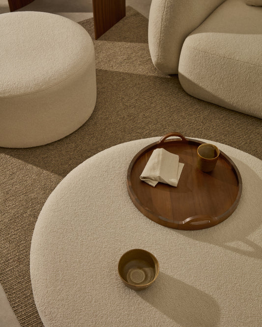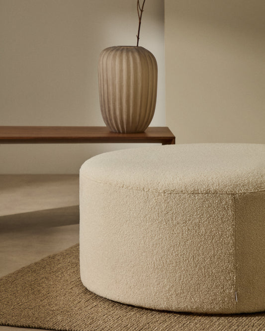 Repose-pieds déhoussable Kaeli en bouclette écru Ø 90 cm