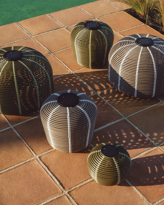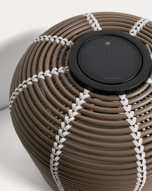 Lampe de table solaire d’extérieur Garoina LED en rotin synthétique taupe Ø 35 cm