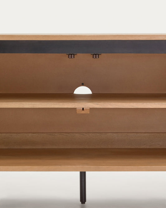 Meuble TV Licia 4 portes en bois de manguier et métal peint en noir 200 x 55 cm
