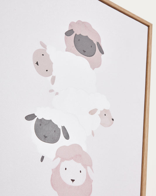 - Tableau avec motifs de moutons sur toile et finition effet aquarelle.