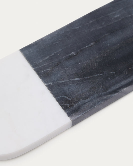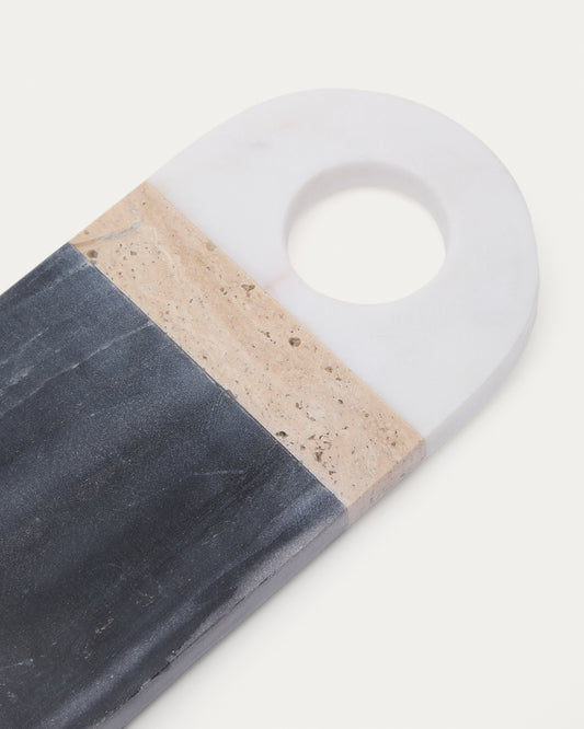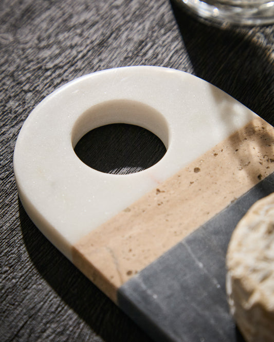 Petite planche de service Nivol en marbre blanc et noir et travertin