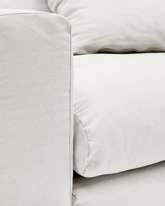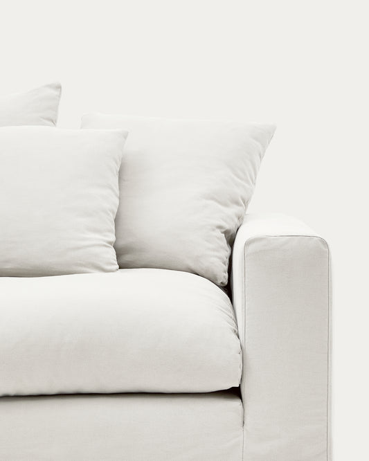 Canapé déhoussable Nora 4 places avec coussins en lin et coton écru 340 cm