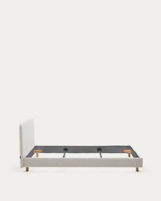 Cadre de lit déhoussable Valma en tissu chenille perle avec pieds en bois de hêtre pour lit de 160 x 200 cm.