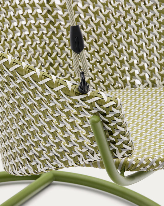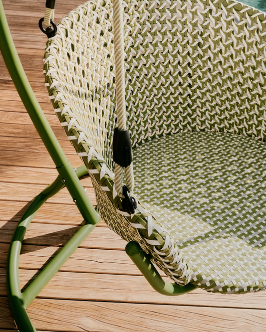 Fauteuil suspendu sur pied Saliga en aluminium et rotin synthétique vert