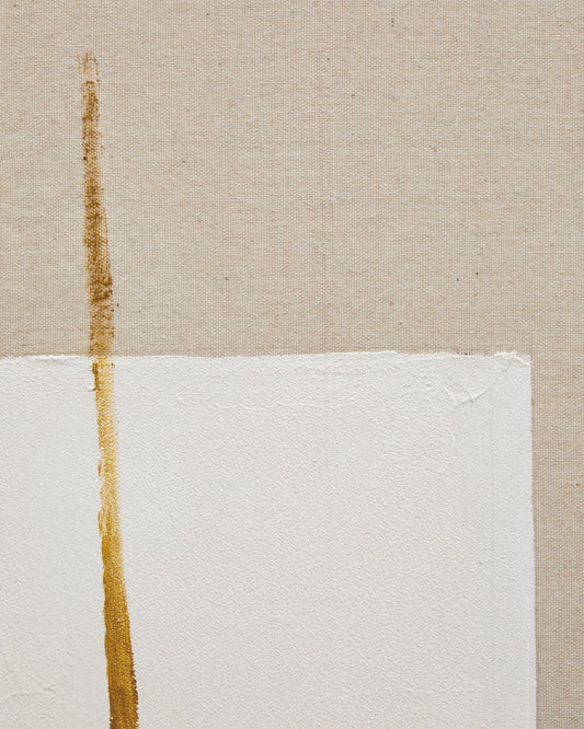 Tableau abstrait Salin avec rayure verticale en lin beige 80 x 100 cm