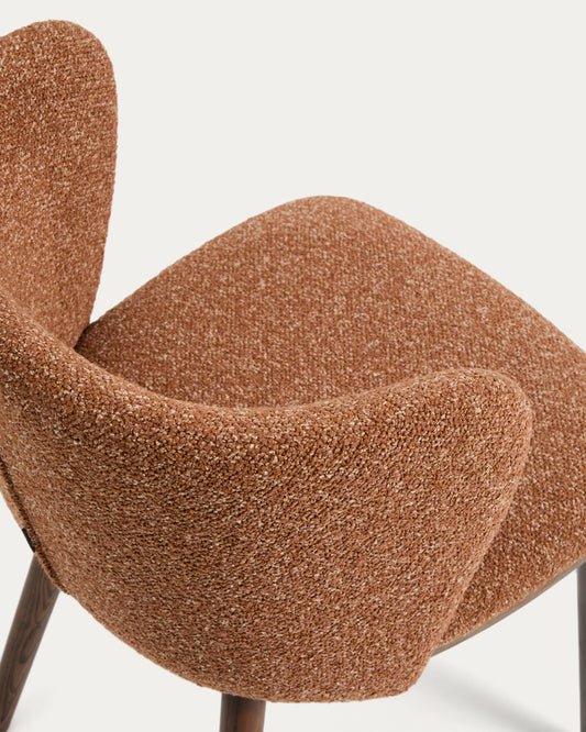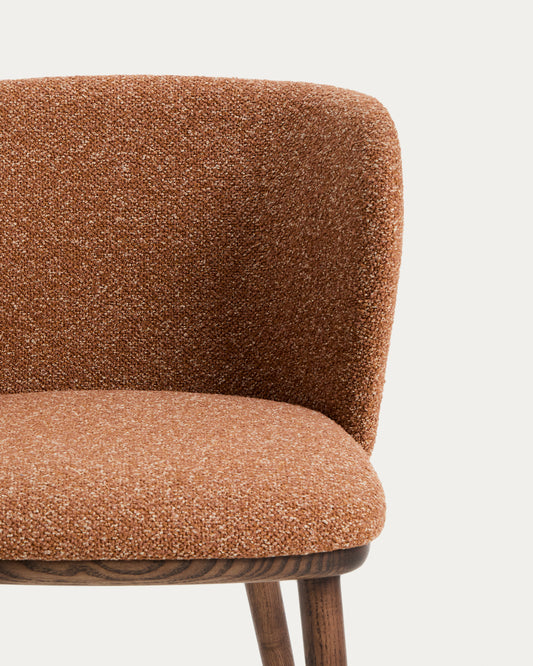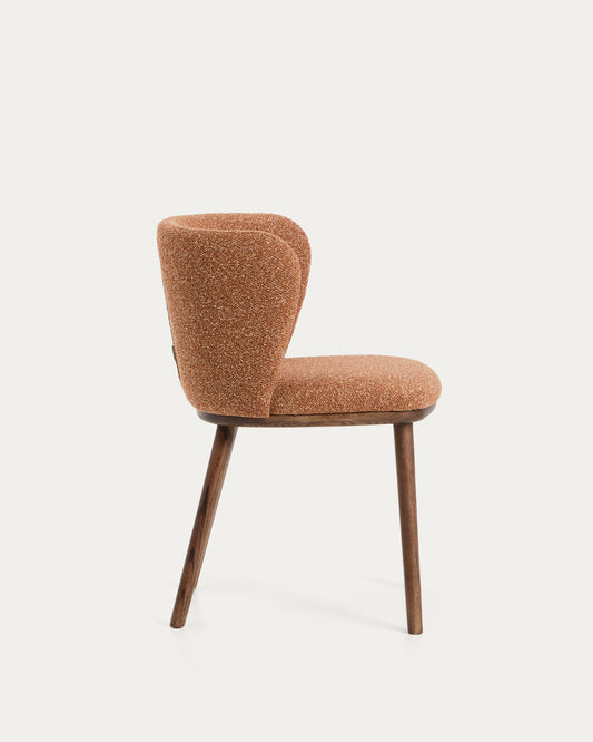 Chaise Ciselia en chenille épaisse terracotta et pieds en bois de frêne avec finition ton noyer FSC Mix Credit