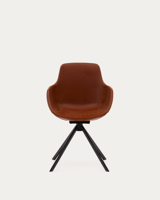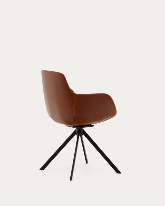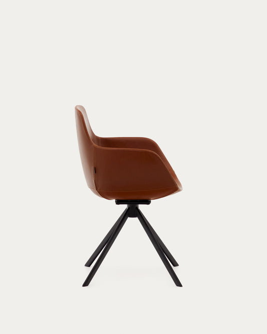 Chaise giratoire auto-retour Tissiana cuir synthétique marron aluminium noir mat
