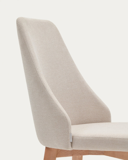 Chaise Rosie en chenille beige et pieds en bois de frêne naturel